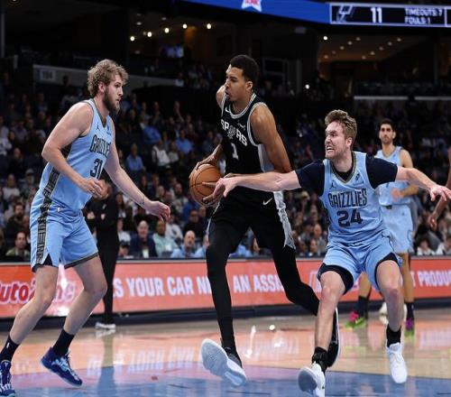 中段文班亚马上场后连续强攻得手,加上三分球,一波流带队反超!但他出场时间来到21分01秒,恰好灰熊叫暂停,文班亚马受时间限制,提前打卡下班!最后3分钟,福克斯内外开花连拿7分,但斯潘塞接球命中三分,低位撤步跳投,又反超马刺!最后16秒,兰代尔两罚不中给马刺机会,福克斯顶着两人强投,被阿尔达玛大帽按下,最终马刺爆冷105-106不敌灰熊!