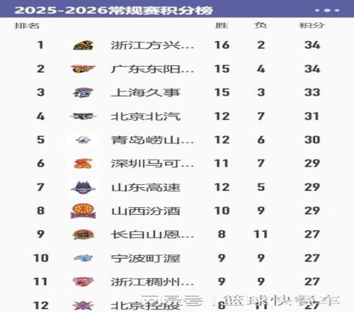 排在积分榜第四名的是北京队。作为本赛季第一争冠热门球队,北京队最近的状态起伏不定。这一轮比赛面对北控队,原本是他们乘胜追击,冲击更好名次的球队。可北京队最终却在主场爆冷输给对手,战绩变成12胜7负,凭借着先赛一场的优势,北京队暂时力压青岛队,成功回到积分榜第四名。而排在积分榜第五名的则是青岛队,他们的战绩为12胜6负。积分榜第6名则是深圳队,他们的战绩为11胜7负。