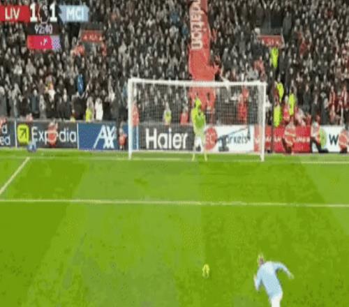 第93分钟,阿利松出击犯规,扑倒了努内斯,点球。